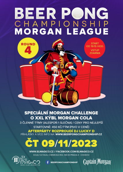 Každý druhý čtvrtek až skoro do Vánoc pokračujeme taky Beer Pong Morgan League a samozřejmě i s afterparty :-)
