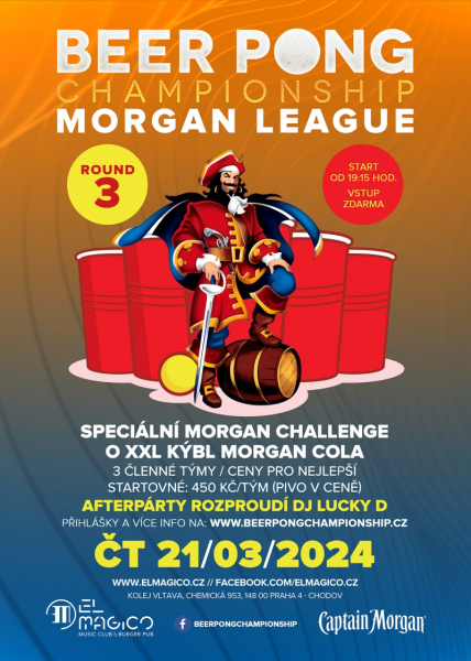 Každý druhý čtvrtek hrajeme v Praze taky Beer Pong Morgan League a i po ní samozřejmě následuje rozjetá AFTERPARTY!