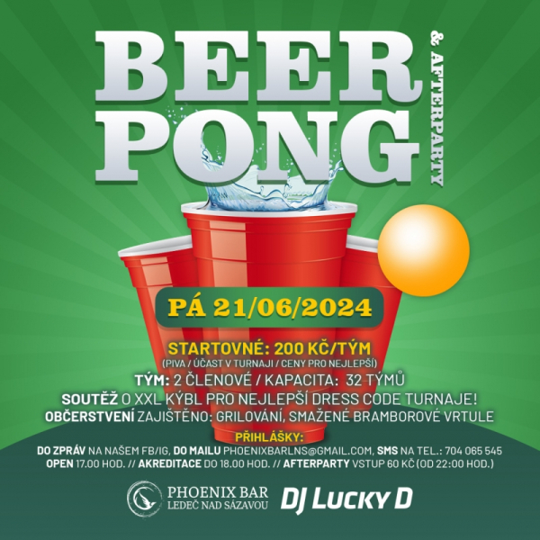 Druhý červnový beer pong s afterparty proběhne v Ledči nad Sázavou a klubu Phoenix.