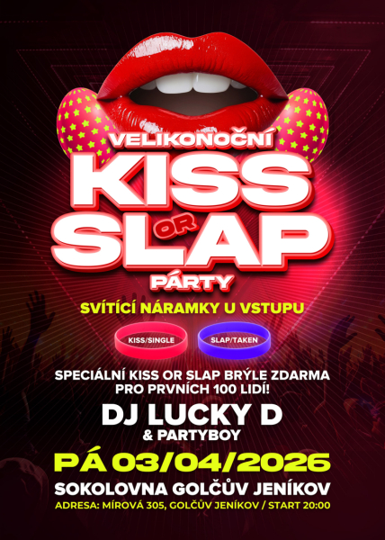 Našláplá Kiss or Slap Party! To je program v pátek 3.4. v Sokolovně Golčově Jeníkově. Těším se na super party, kam to mám fááákt kousíček :)