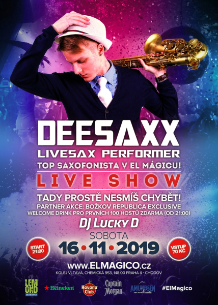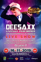 Hvězdný saxofonista DeeSaxx a jeho úchvatný doprovod žhavé taneční muziky si prostě musíš vychutnat živě! Už tuto sobotu v El Mágicu v Praze!