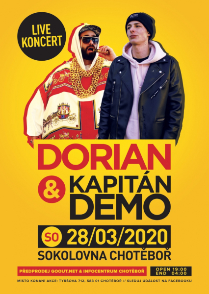Další MEGAAKCE! Společný Live Koncert Doriana a Kapitána Dema! To tady ještě nebylo! Sokolovna Chotěboř bude praskat ve švech, buď u toho! ;-)